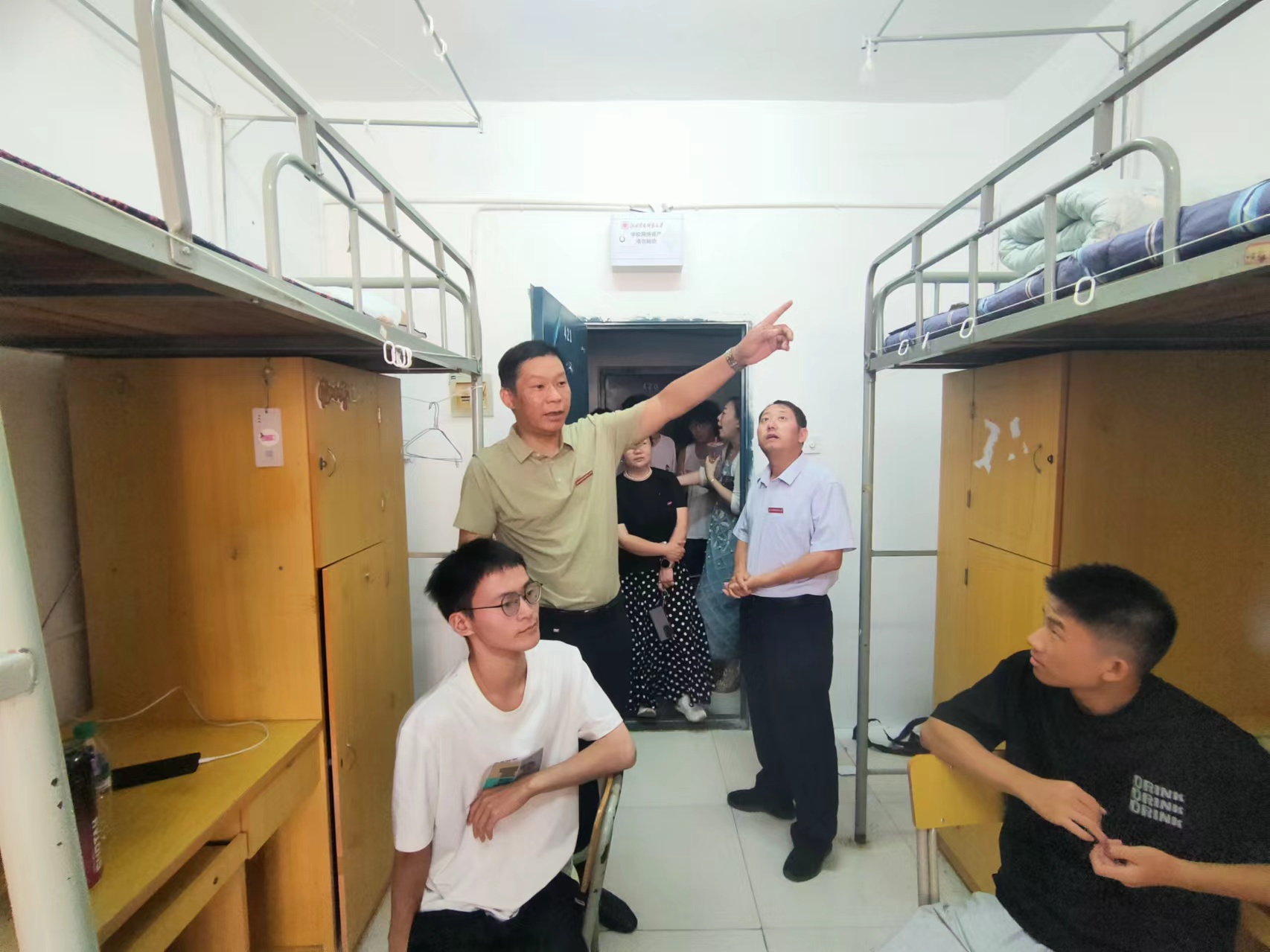 迎新当天晚上,在学院党委副书记姜火文同志的带领下,学院领导班子成员和全体新生班主任深入新生宿舍,领导和老师们详细询问了同学们的生活环境的适应情况。耐心地向新生们介绍大学学习、入学教育的安排,解答新生提出的一些疑问,同时提醒新生们要提高安全意识,拒绝宿舍推销,谨防上当受骗。学院领导和老师们细致入微的关怀,不仅拉近师生之间的距离,将温暖送到新生的心坎里,让新生有归属感,使新生的在校生活更加安心、舒心。